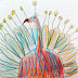 In this picture (5x7 on watercolor paper) I played with fine sharpie lines in many colors and layered waterbrush pens over the patterning. Working like this, small and detailed feel like embroidery. Very relaxing.
