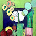 This piece is created on a repainted canvas 18x24 in acrylics. Pomegranates.